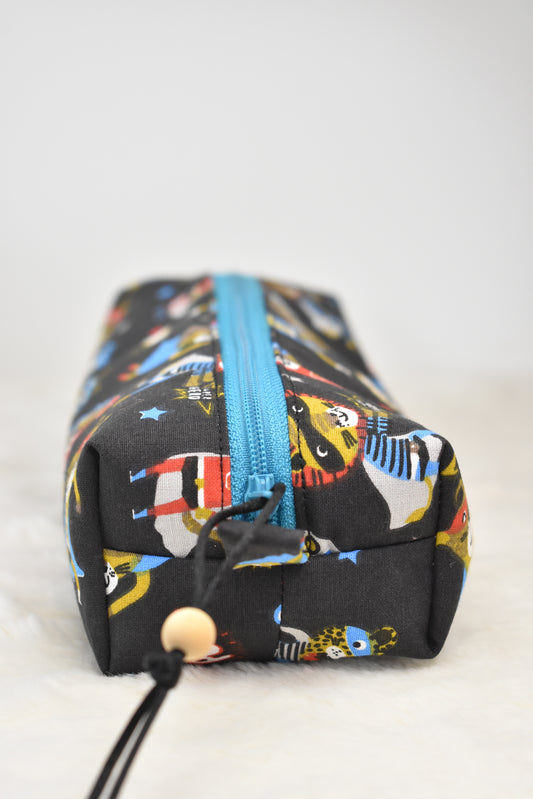 Création ludique et vitaminée pour le quotidien des bambins, cette trousse s’emporte à l’école pour y ranger stylos et crayons. Elle s’emporte en vacances ou chez les grands-parents pour y cacher les merveilles récoltées au gré des chemins et découvertes, pour y collecter les petits secrets et les idées créatives écrites sur papier.