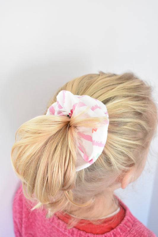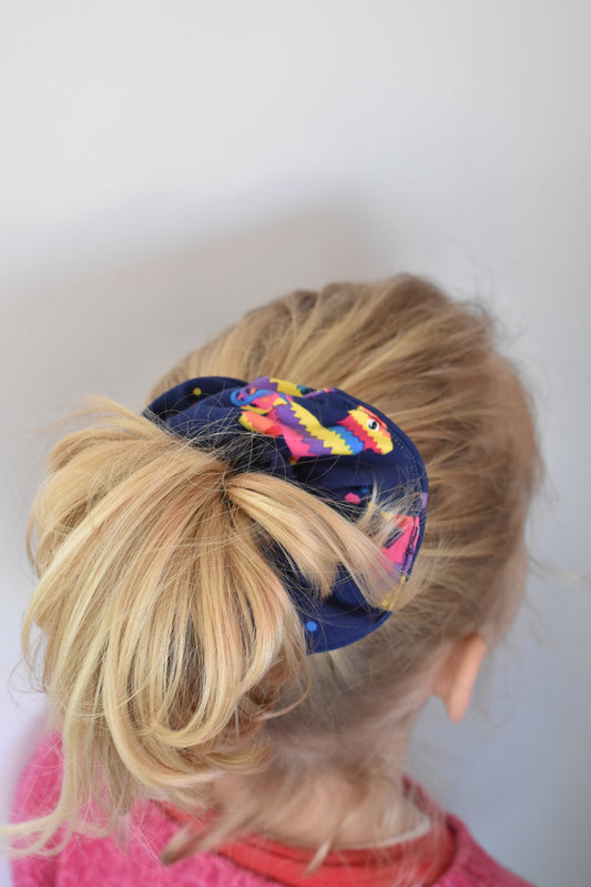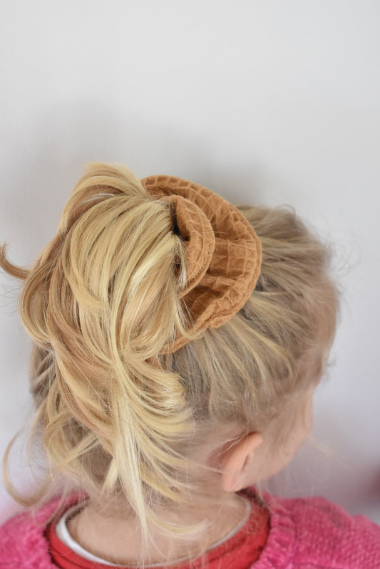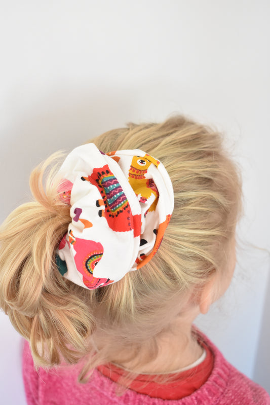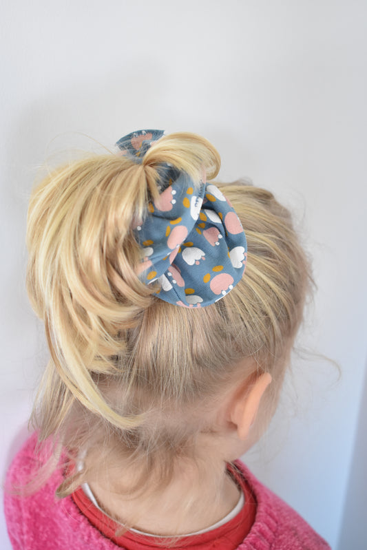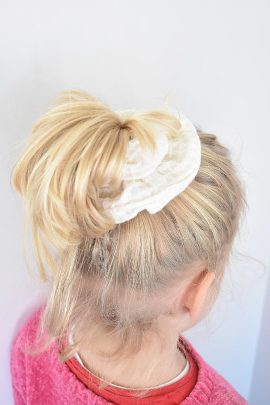 Taille : adapté de 3 ans à 77 ans - Taille unique – Diamètre intérieur (passage des cheveux) du chouchou non étiré : 4,5cm. Sa taille permet de faire deux tours afin de bien maintenir les cheveux.