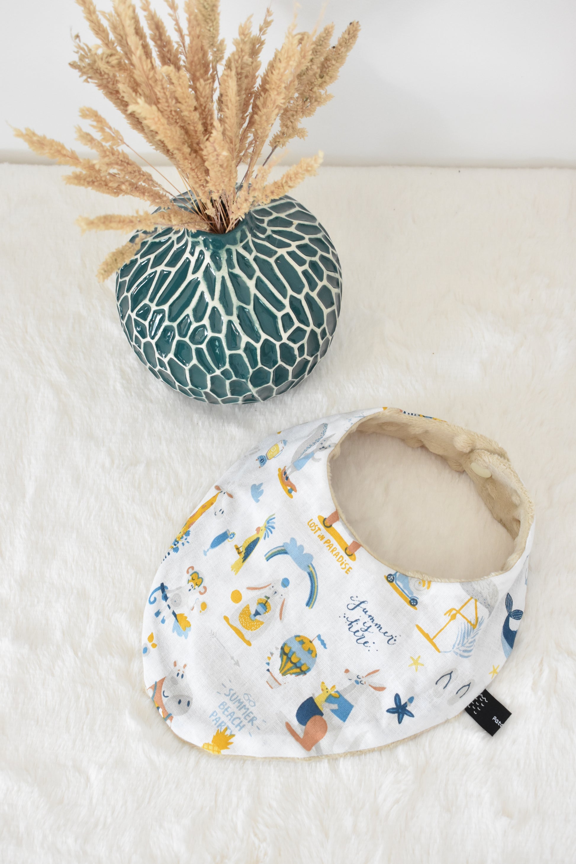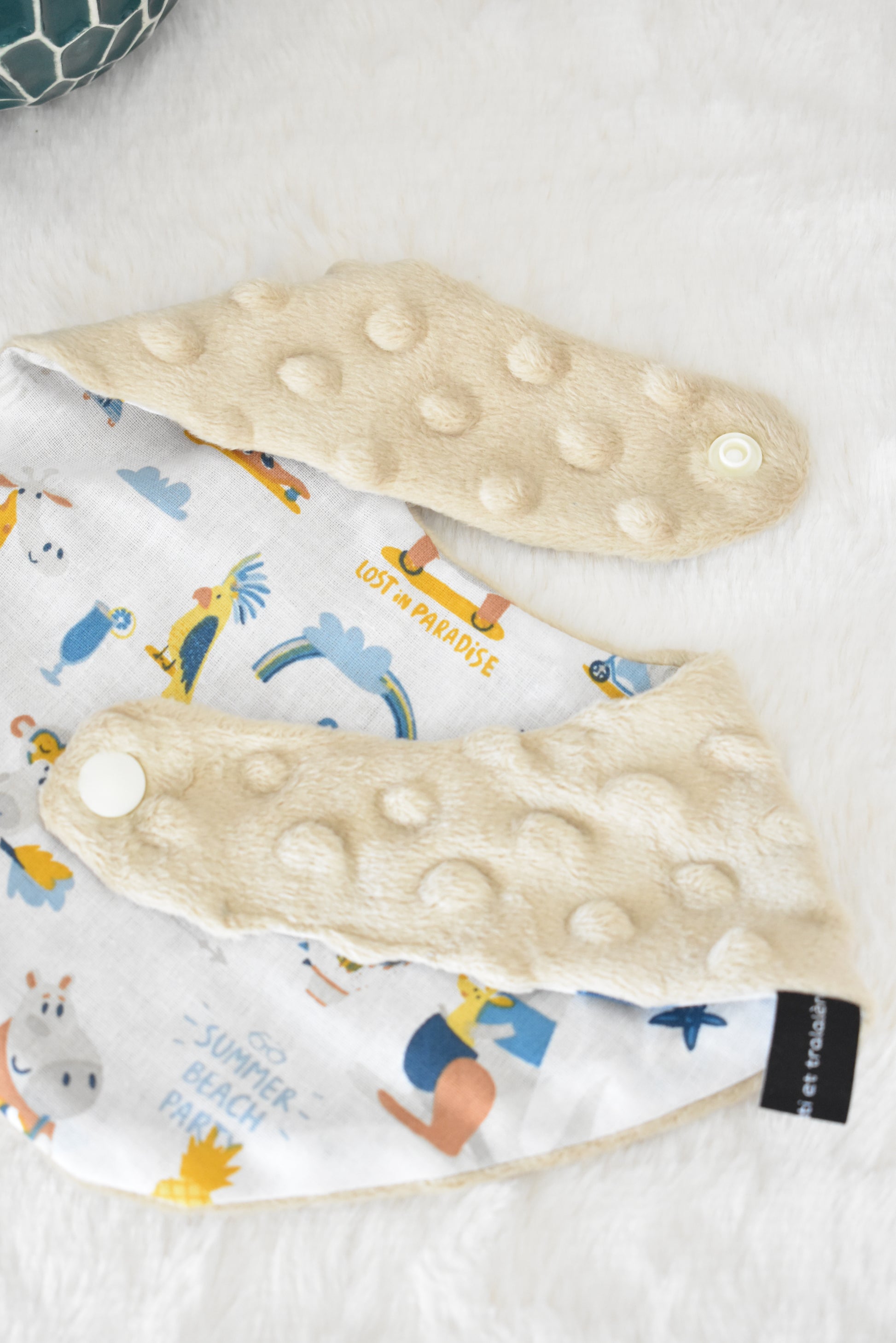Sa face coton motif coloré et sa forme bandana originale apportent à votre bébé un style tendance. Sa face minky toute douce assure un confort à la peau de votre tout-petit et une absorption efficace.