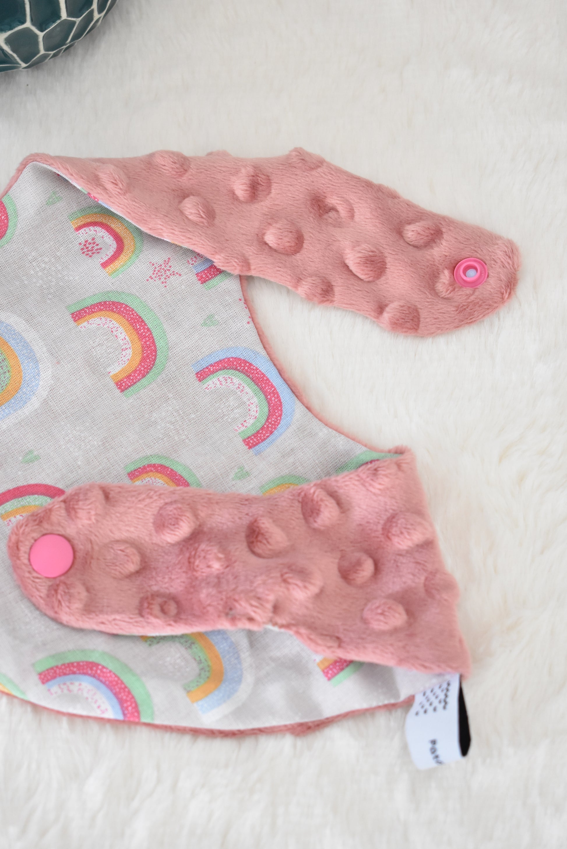 Sa face coton motif coloré et sa forme bandana originale apportent à votre bébé un style tendance. Sa face minky toute douce assure un confort à la peau de votre tout-petit et une absorption efficace.