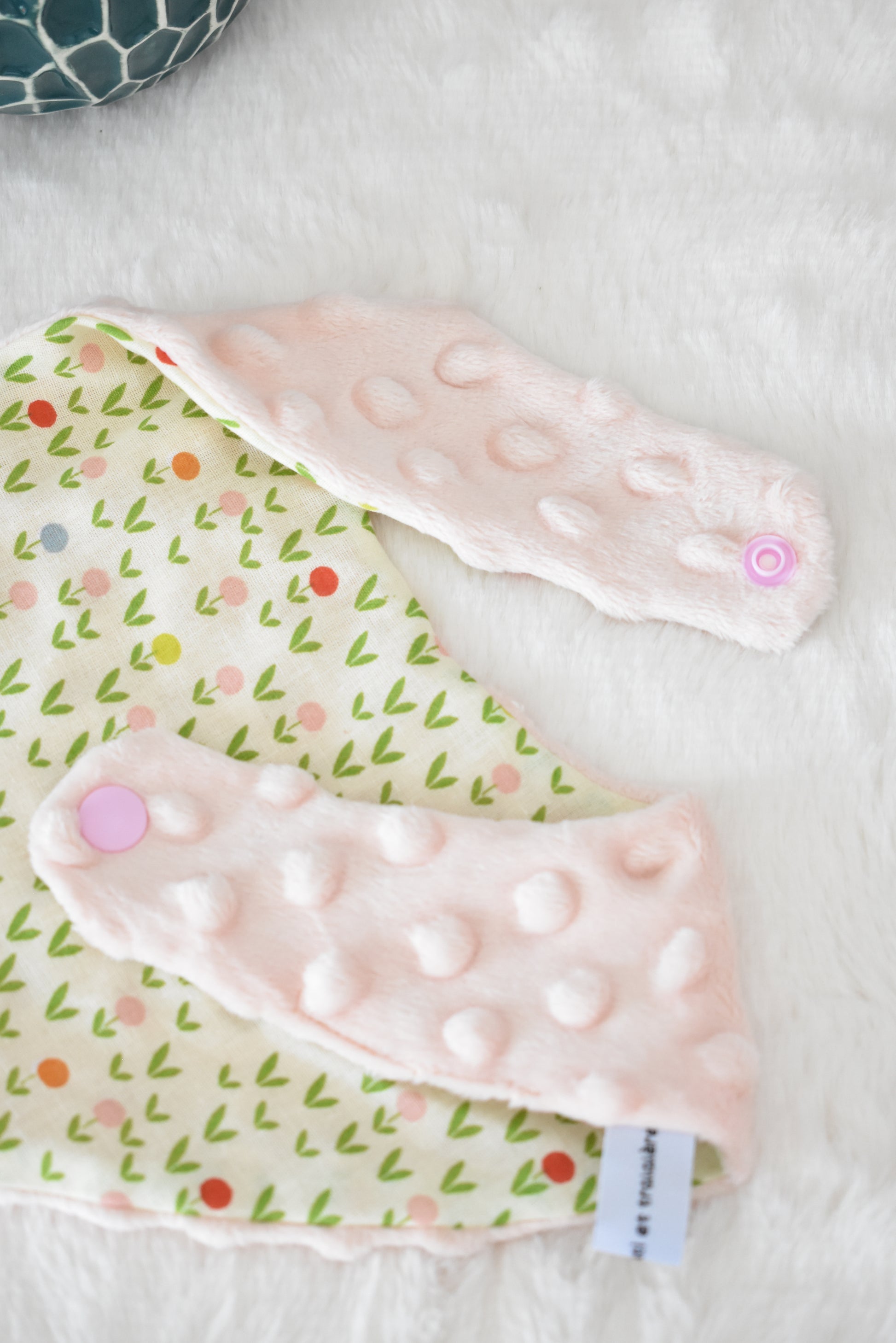 Sa face coton motif coloré et sa forme bandana originale apportent à votre bébé un style tendance. Sa face minky toute douce assure un confort à la peau de votre tout-petit et une absorption efficace.
