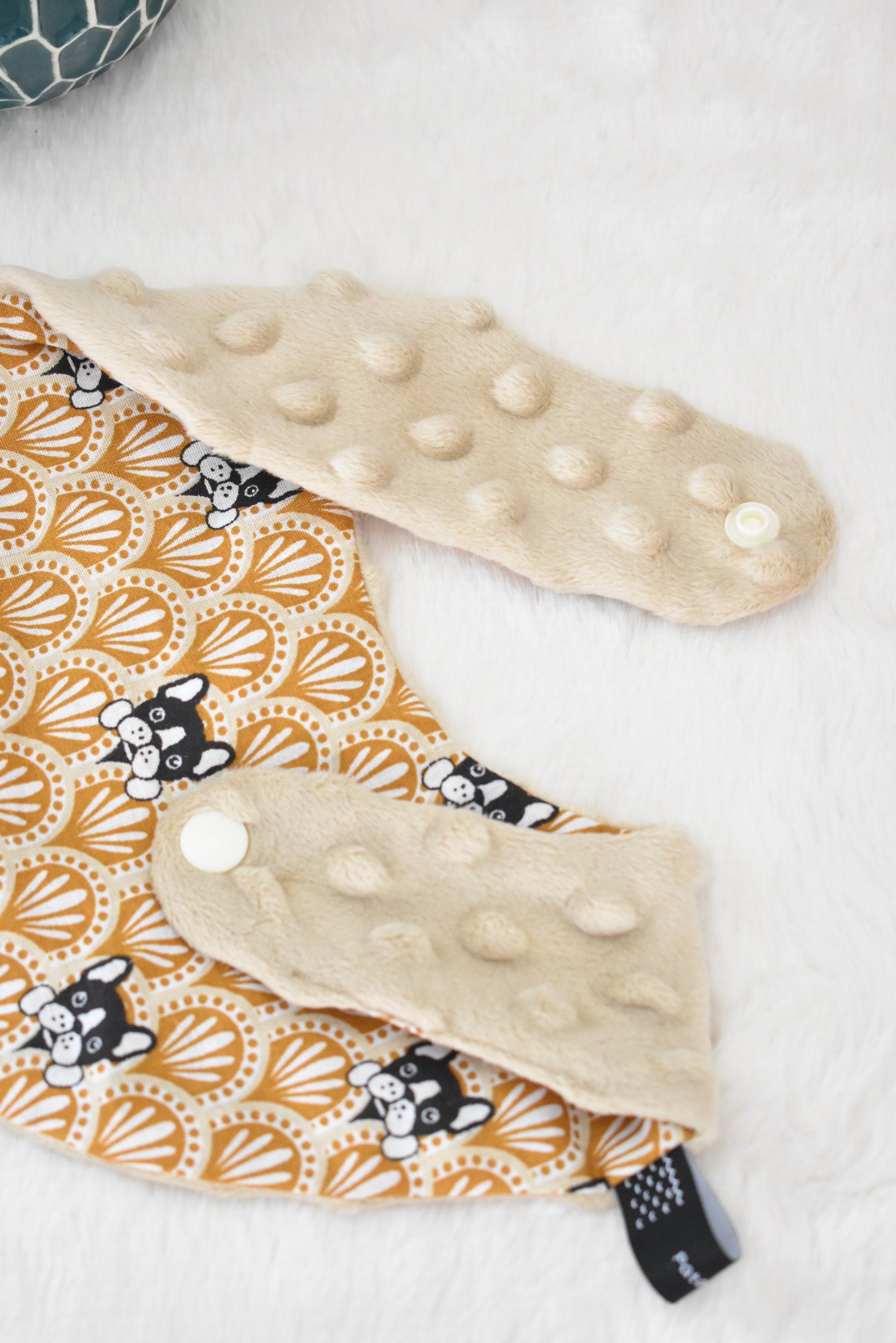 Sa face coton motif coloré et sa forme bandana originale apportent à votre bébé un style tendance. Sa face minky toute douce assure un confort à la peau de votre tout-petit et une absorption efficace.