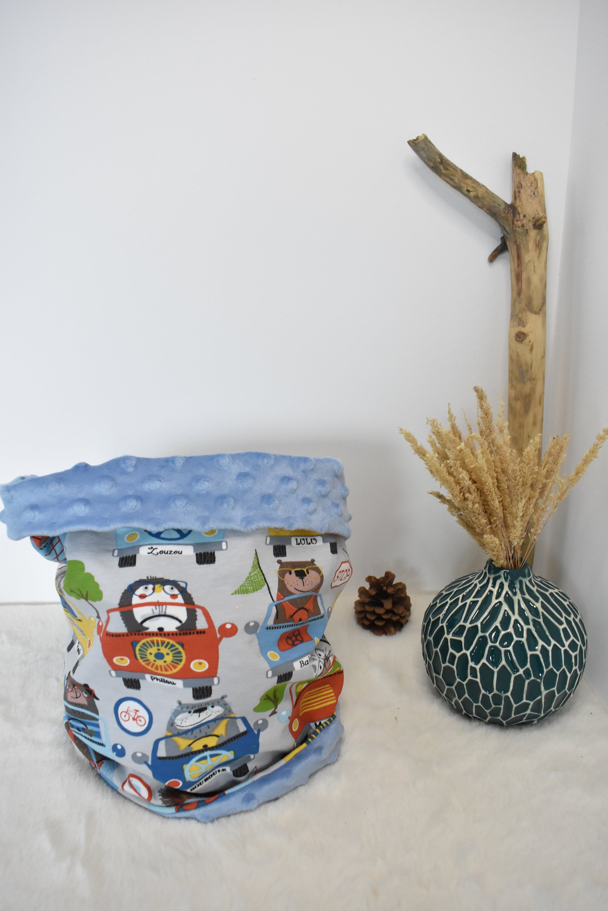 Sa face jersey motif coloré et sa face minky toute douce assurent un confort à la peau de votre enfant et l’élasticité pour le passage de la tête. Sa hauteur couvre parfaitement tout le cou (et même les oreilles, si on le remonte un peu !) et garantit un style moderne et un emmitouflement efficace.