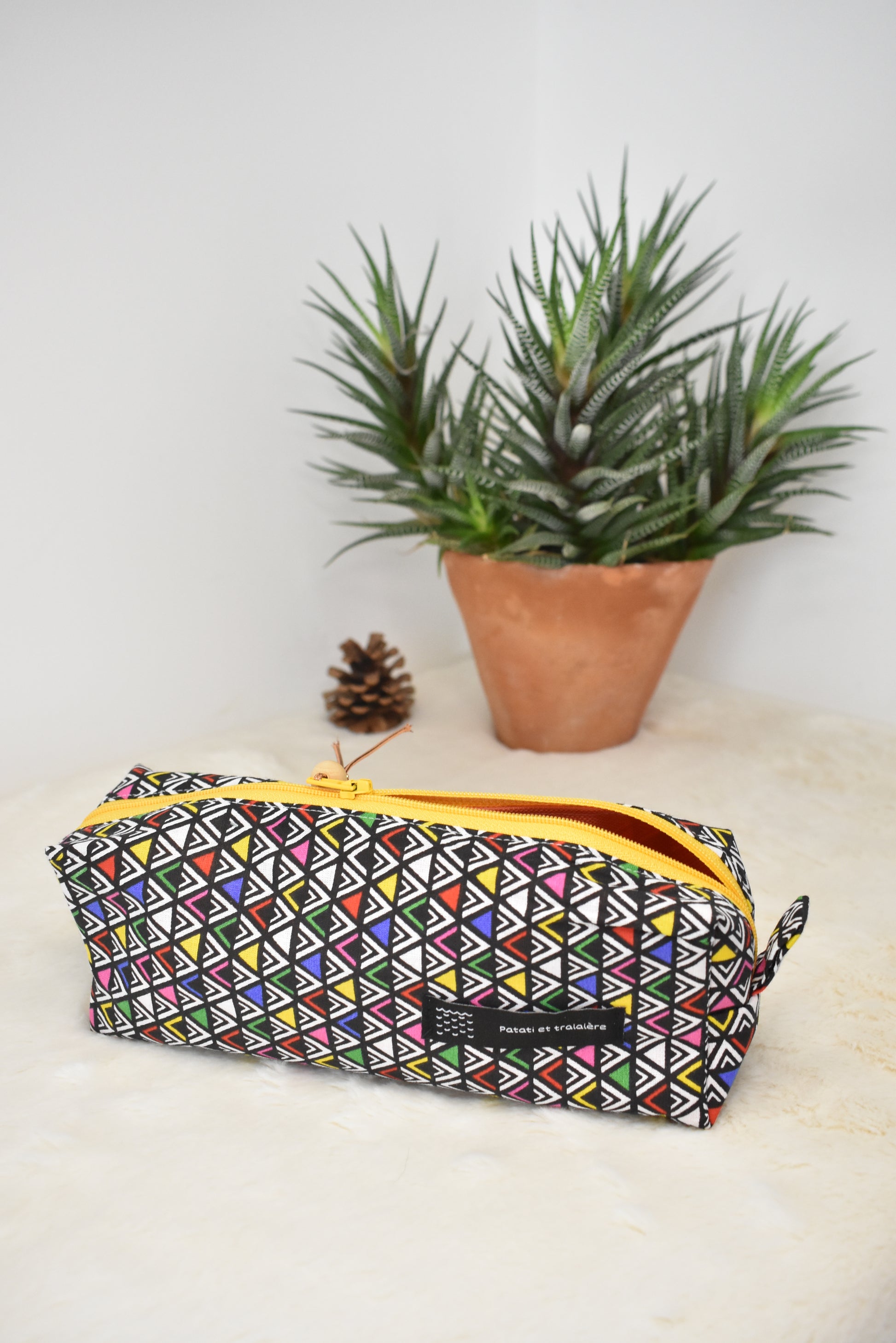 Création ludique et vitaminée pour le quotidien des bambins, cette trousse s’emporte à l’école pour y ranger stylos et crayons. Elle s’emporte en vacances ou chez les grands-parents pour y cacher les merveilles récoltées au gré des chemins et découvertes, pour y collecter les petits secrets et les idées créatives écrites sur papier.