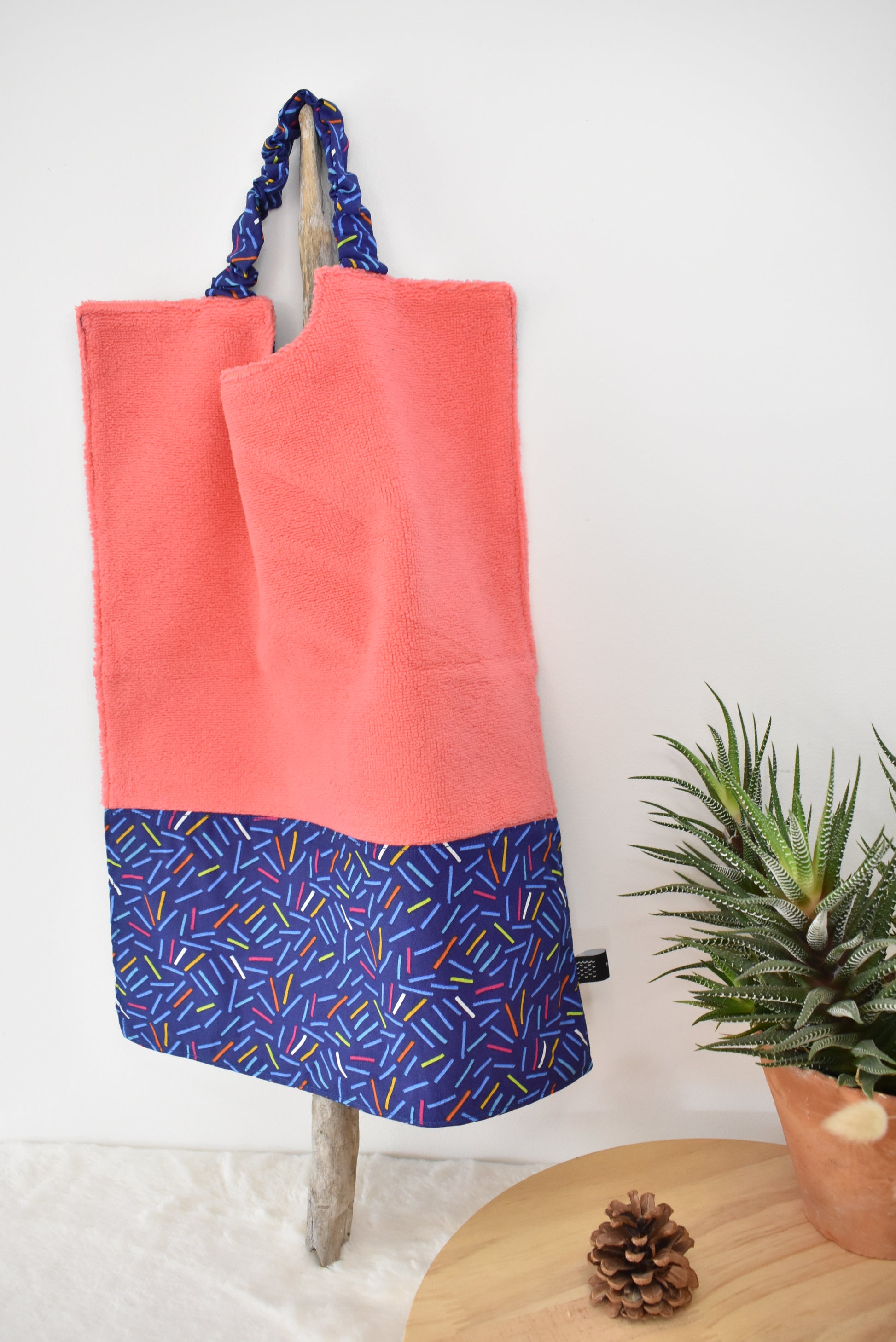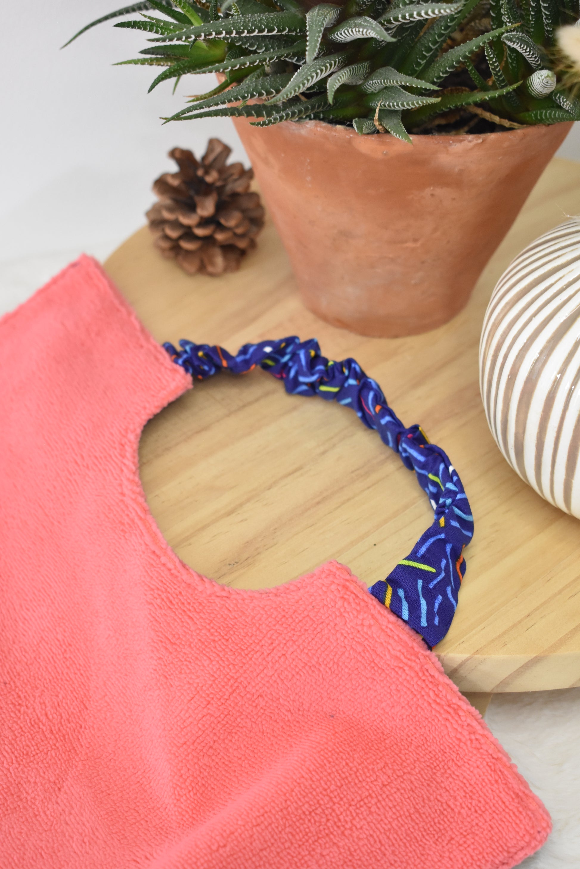 Devant : tissu éponge bambou Rose et tissu coton imprimé Nuit colorée