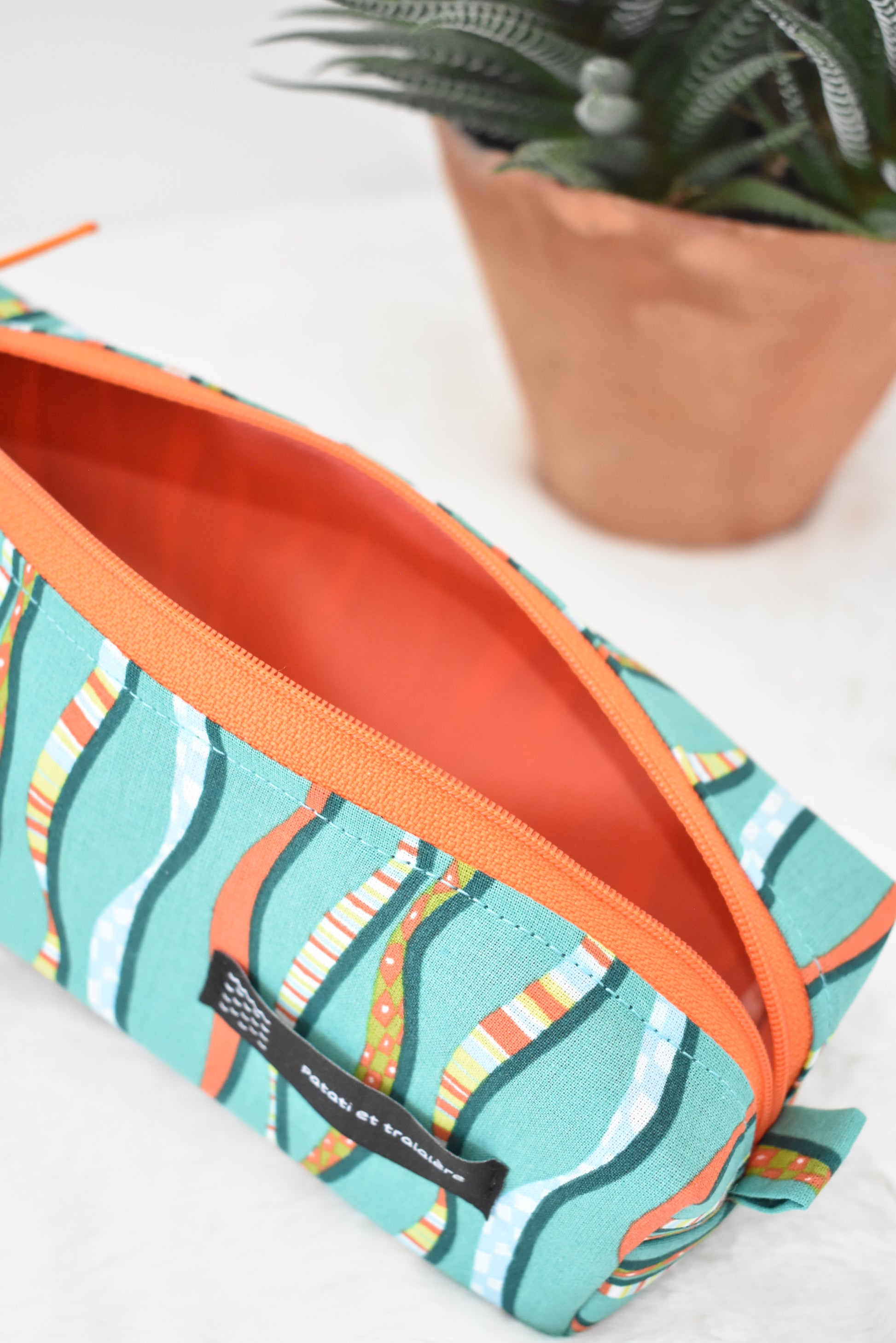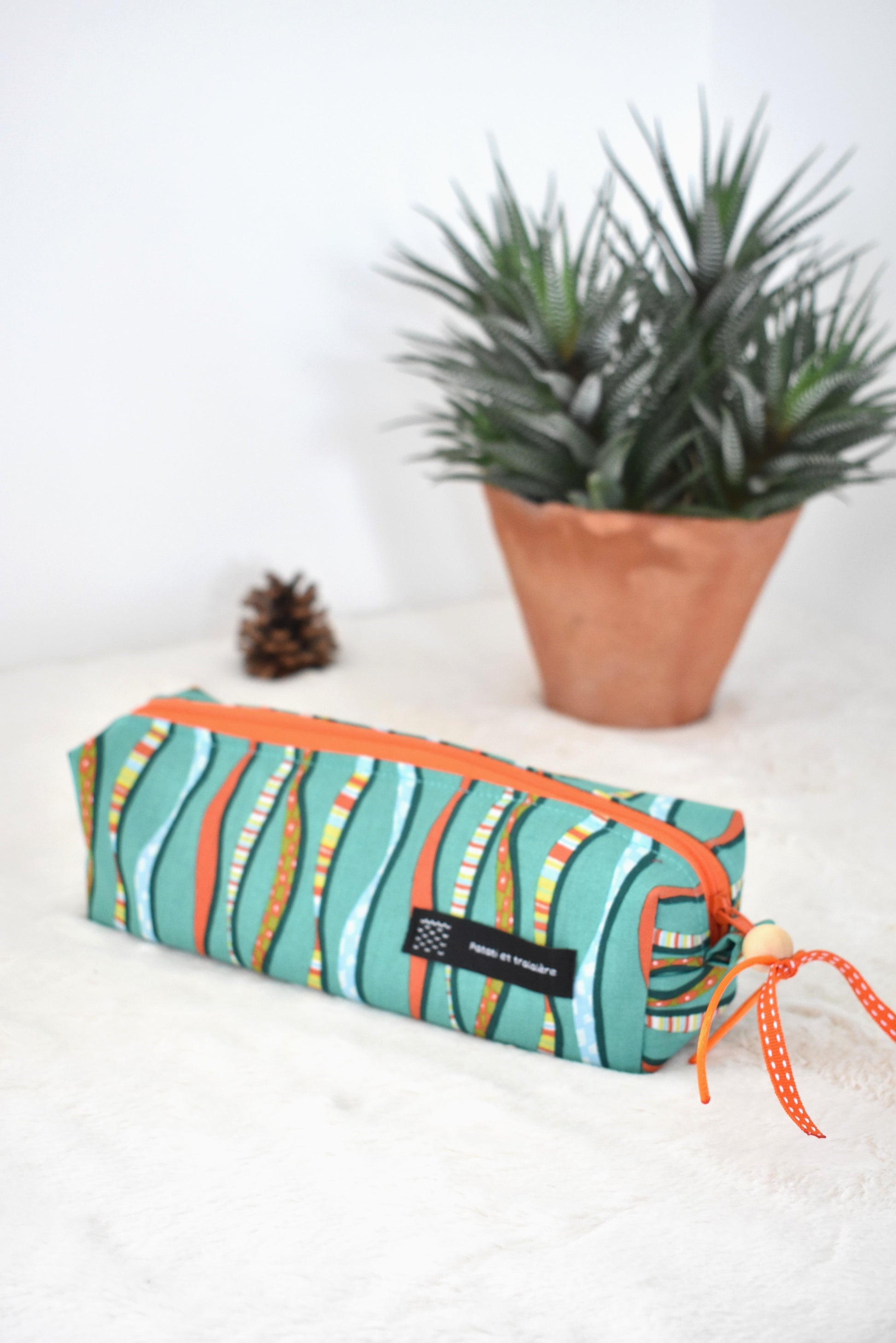Création ludique et vitaminée pour le quotidien des bambins, cette trousse s’emporte à l’école pour y ranger stylos et crayons. Elle s’emporte en vacances ou chez les grands-parents pour y cacher les merveilles récoltées au gré des chemins et découvertes, pour y collecter les petits secrets et les idées créatives écrites sur papier.