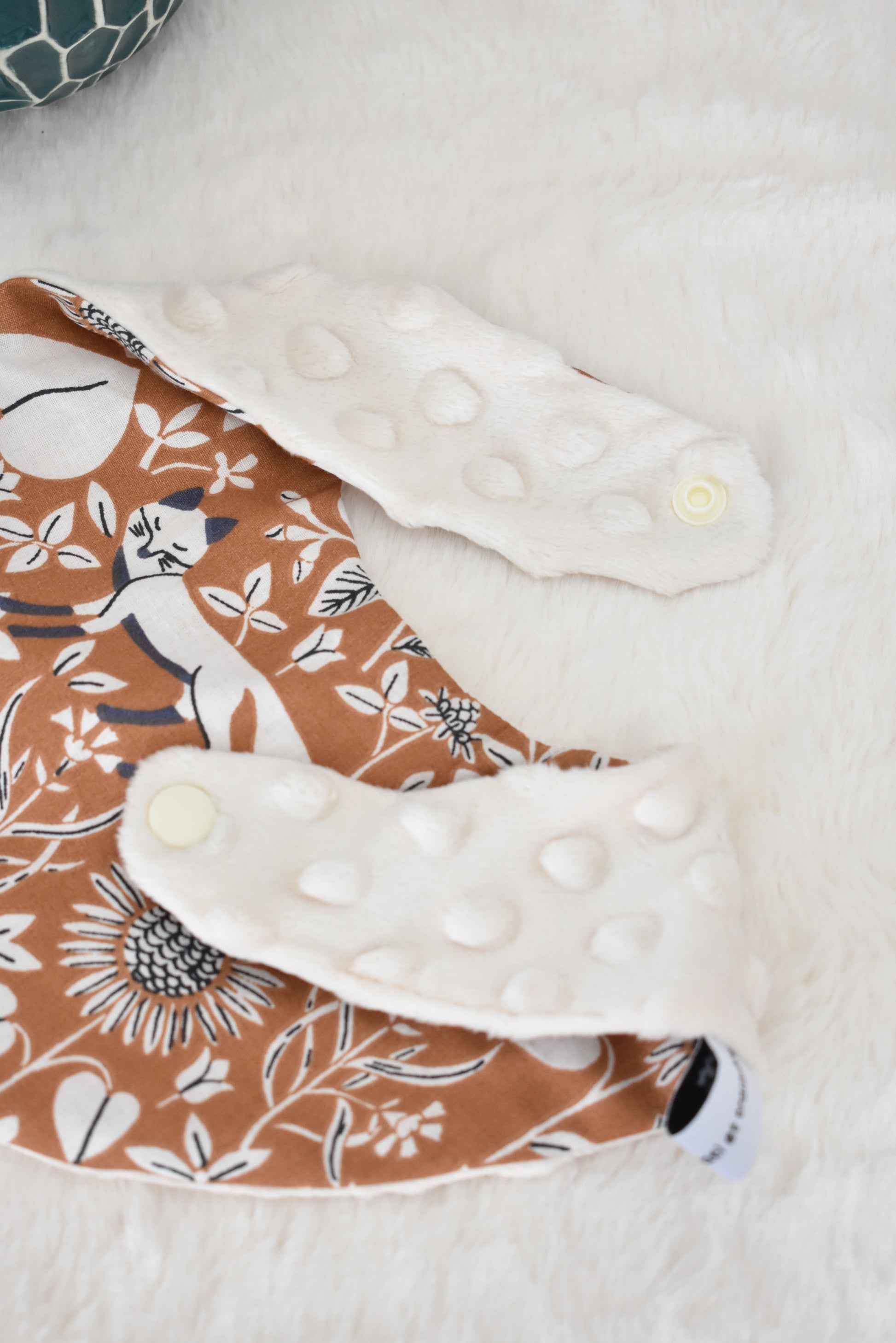 Sa face coton motif coloré et sa forme bandana originale apportent à votre bébé un style tendance. Sa face minky toute douce assure un confort à la peau de votre tout-petit et une absorption efficace.